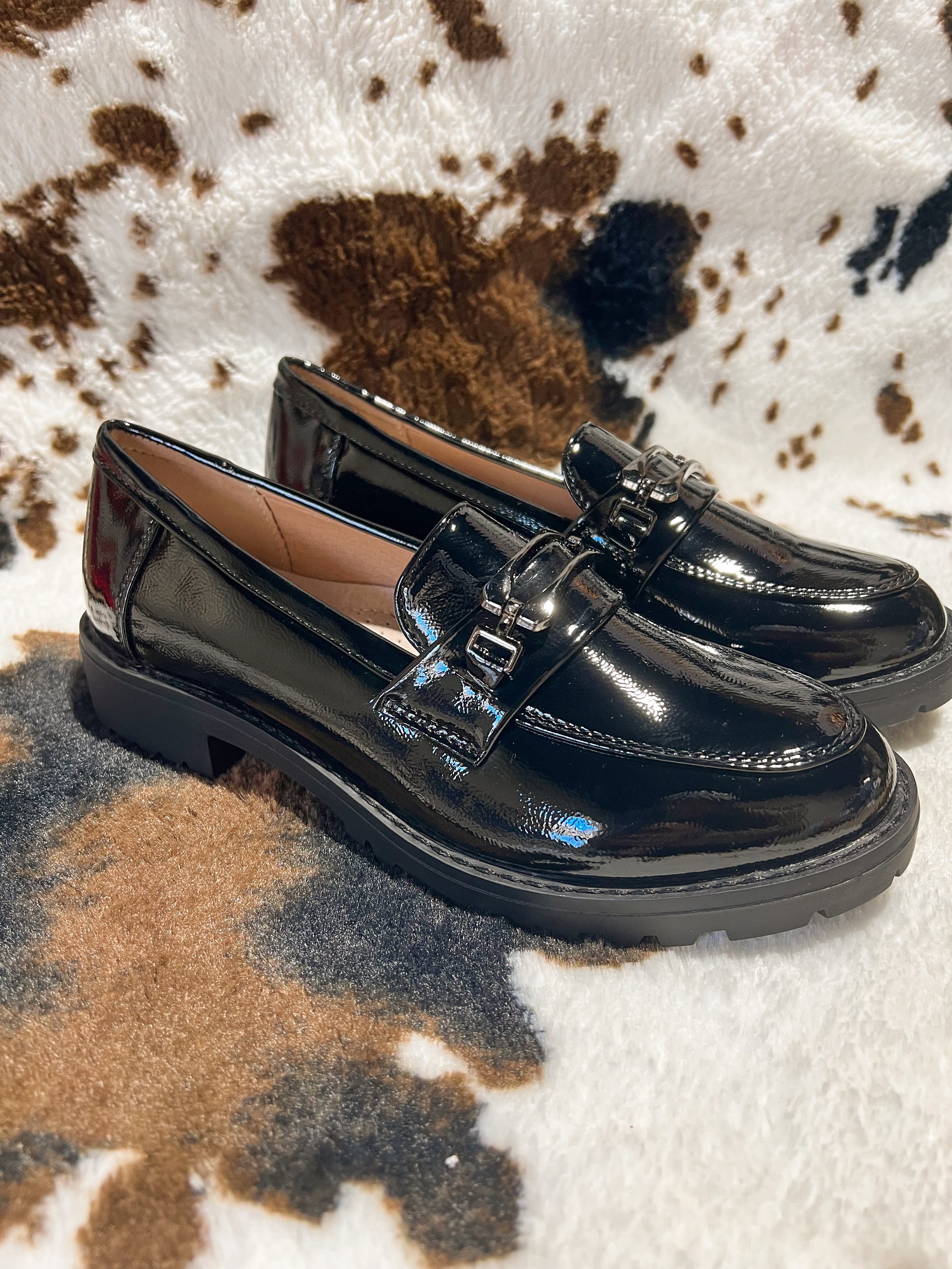 Introducing the Anessa Black Faux Patent Leather Buckle Loafer, the must-have shoe style of the season. With a blend of comfort and chic design, it's perfect for any occasion. Slip into these stylish loafers and elevate your look.