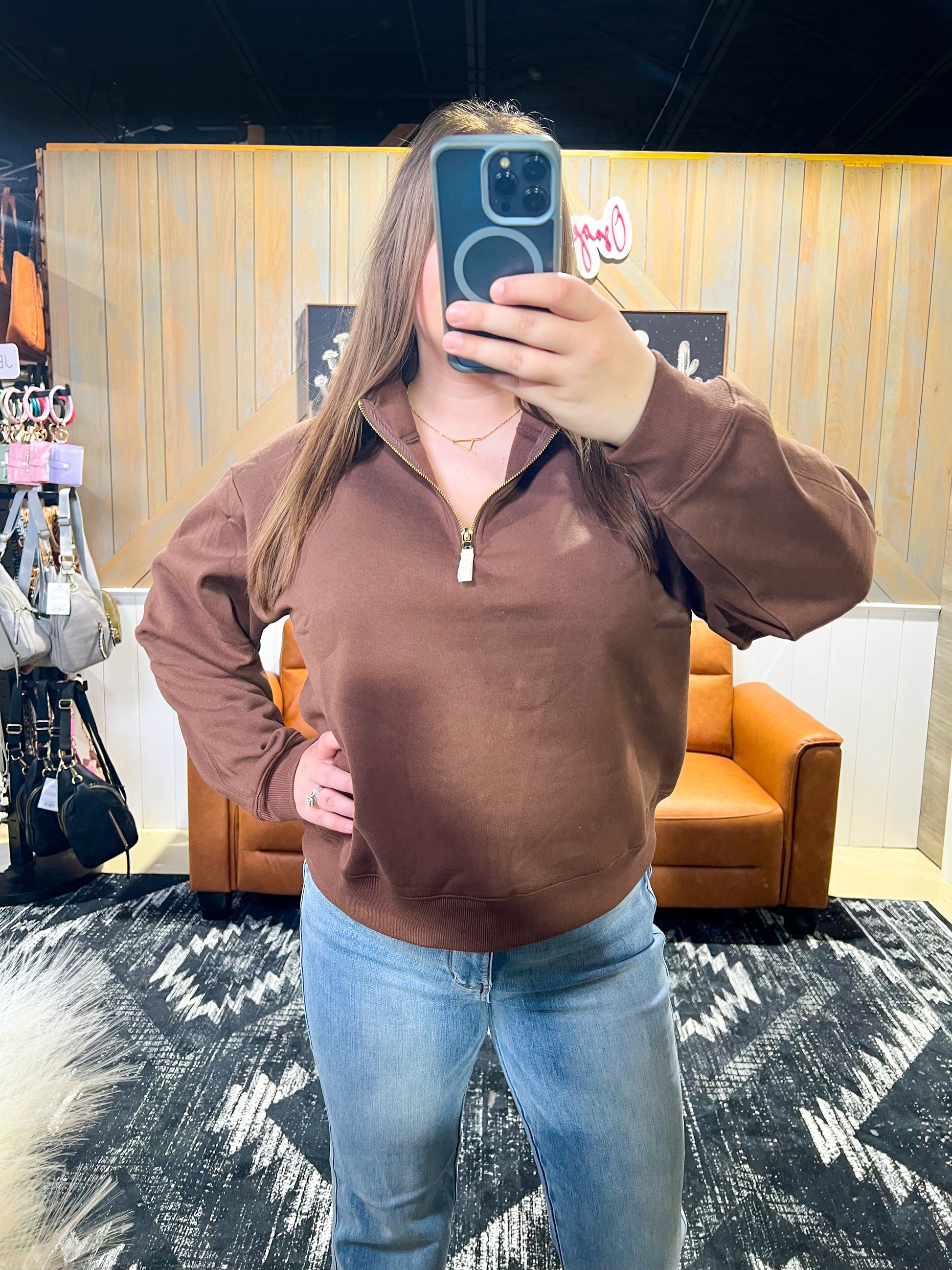 Stay cozy with our Brown Fleece 1/4 Zip Pullover. Its comfy design is perfect for any occasion!