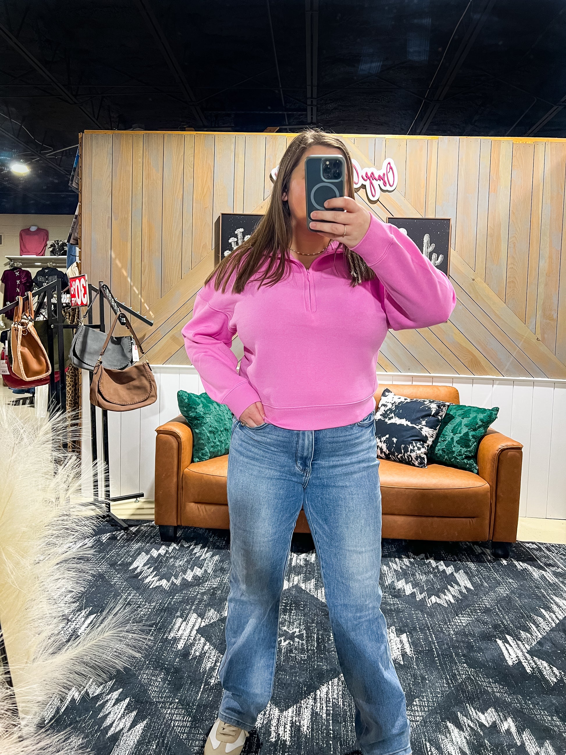 Introducing our Candy Pink Half Zip Pullover. Made from soft fleece, this pullover is not only cozy but also features a slightly shorter length for a flattering fit. Perfect for any occasion, this must-have piece will have you wanting it in every color.