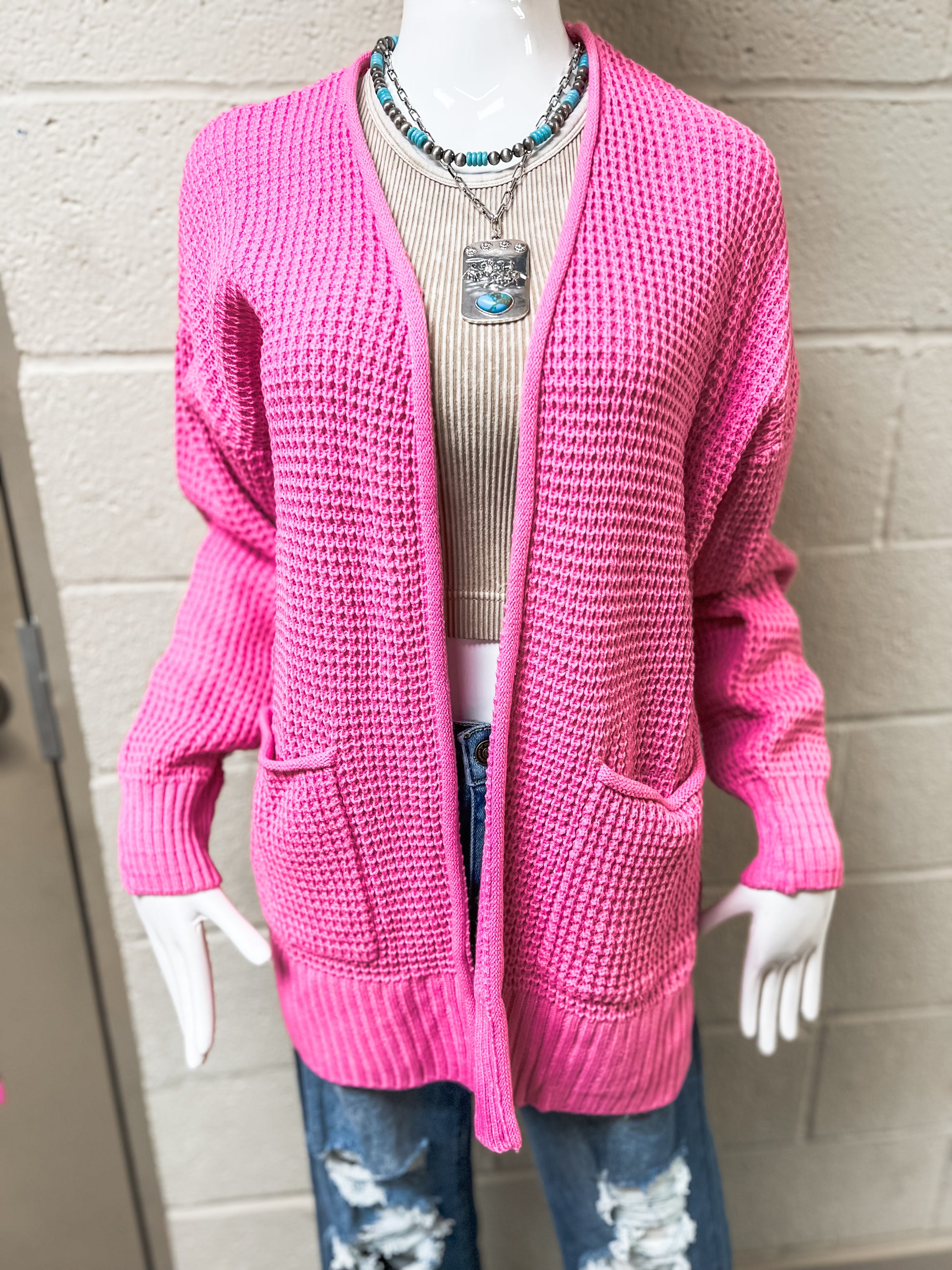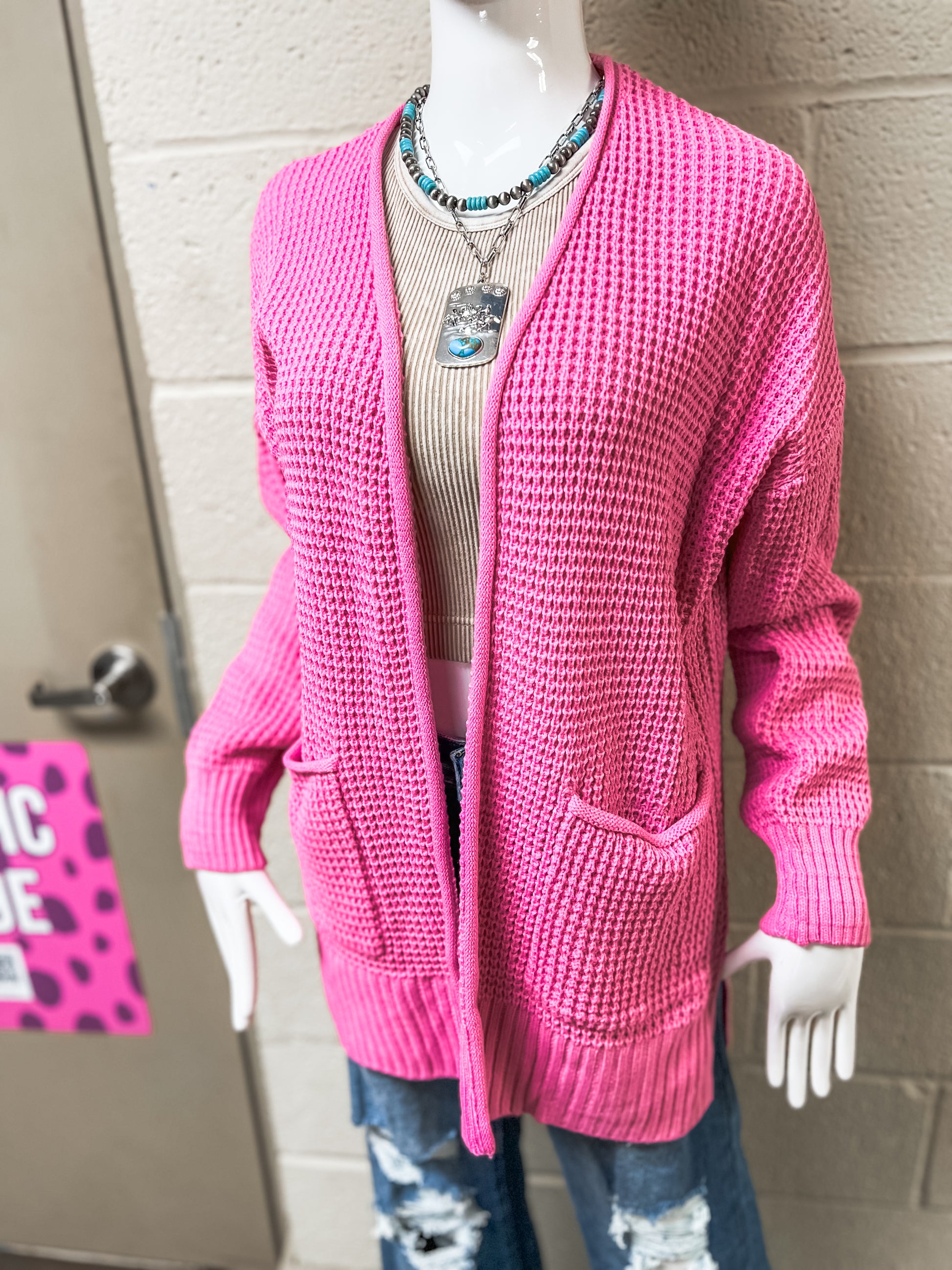 Candy Pink Waffle Knit Cardigan