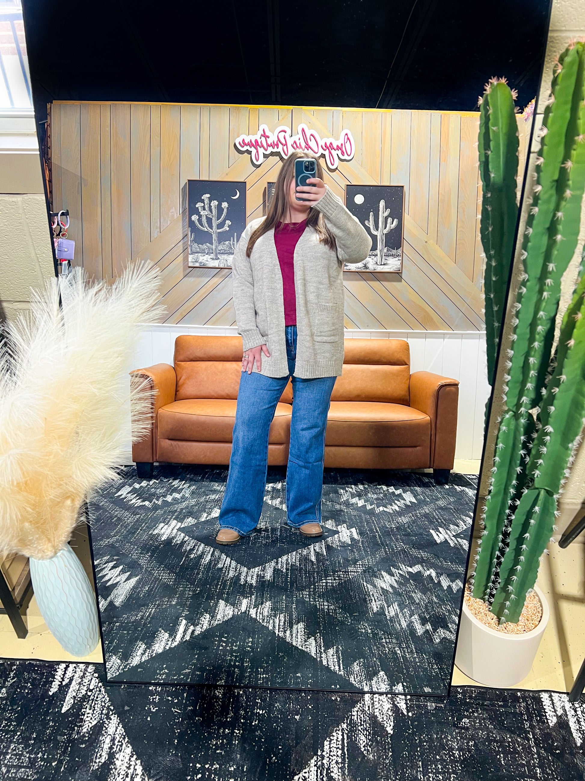 This Heather Mocha Sweater Cardigan offers a relaxed fit, making it comfortable to layer during the cool Fall season. Its trendy neutral color adds a touch of trendiness to any outfit while keeping you cozy. Perfect for staying warm in style.