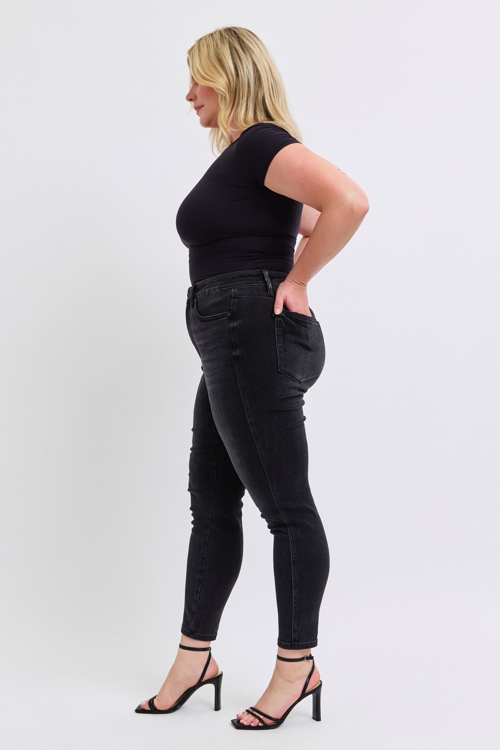 Judy Blue Roxie Mid Rise Tummy Control Black Skinny Jeans (JB 88878)