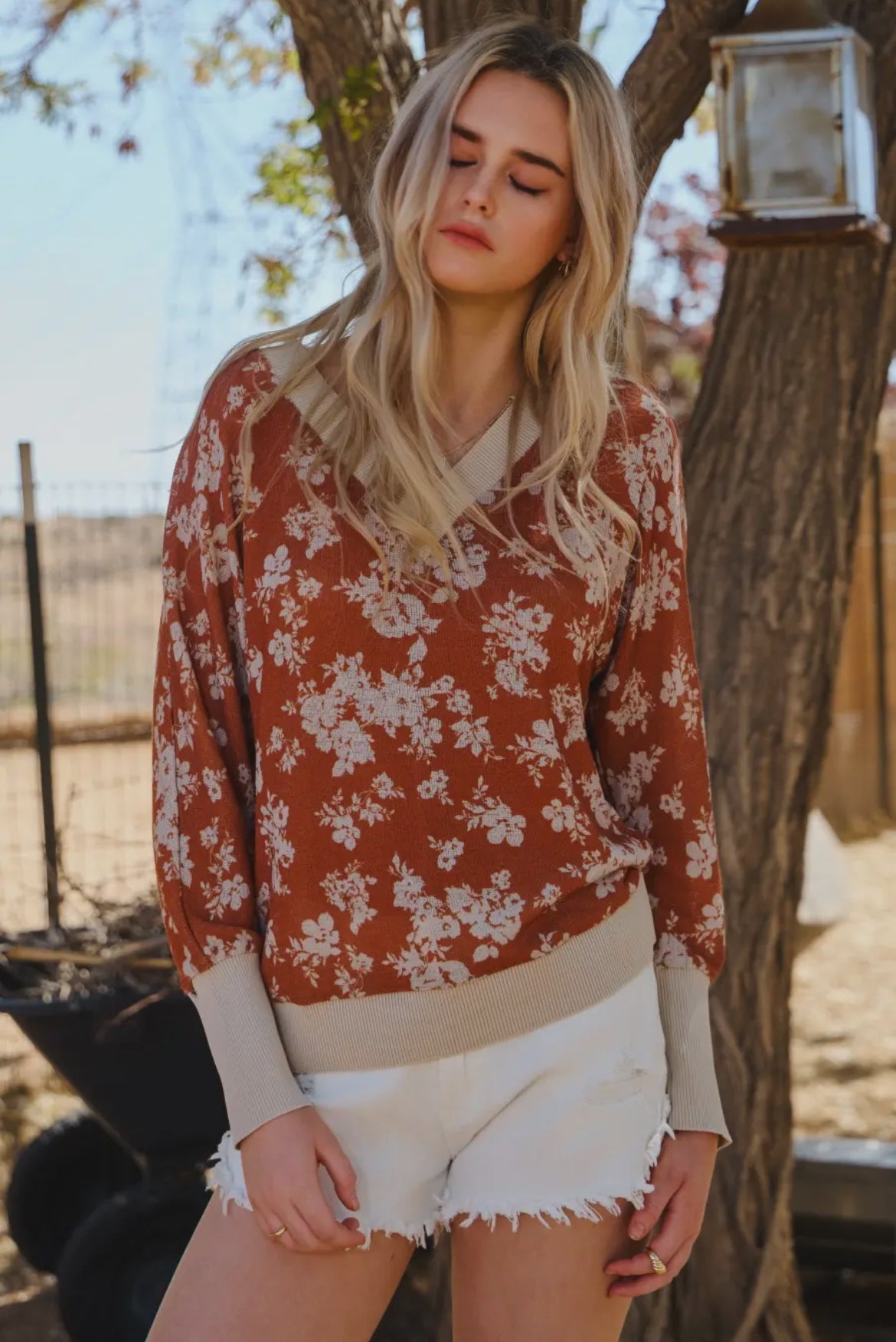 This Rust Floral Relaxed Knit Top offers both comfort and style. Made from a soft lightweight knit material, it features a gorgeous shade of rust and a feminine floral pattern. Perfect for any occasion, this top is a must-have addition to any wardrobe.