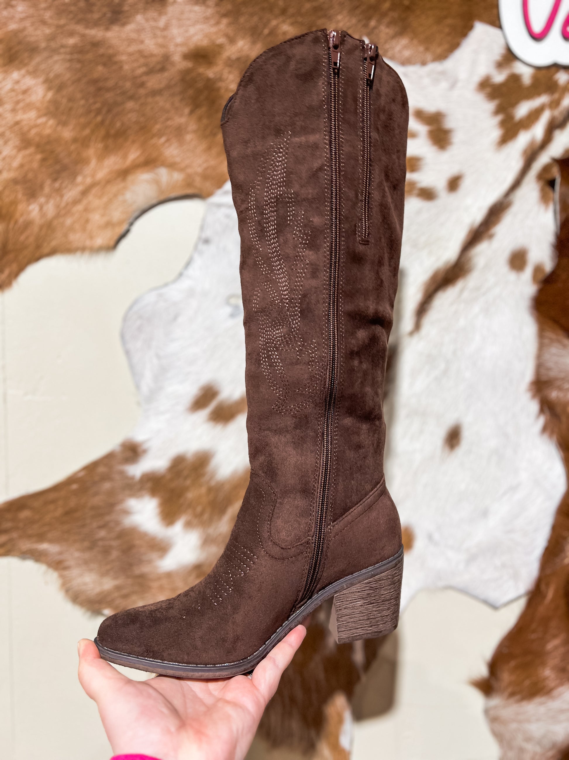 Every occasion calls for a standout look and these tall western boots are just that! Faux suede and some western flair? Yes, please!