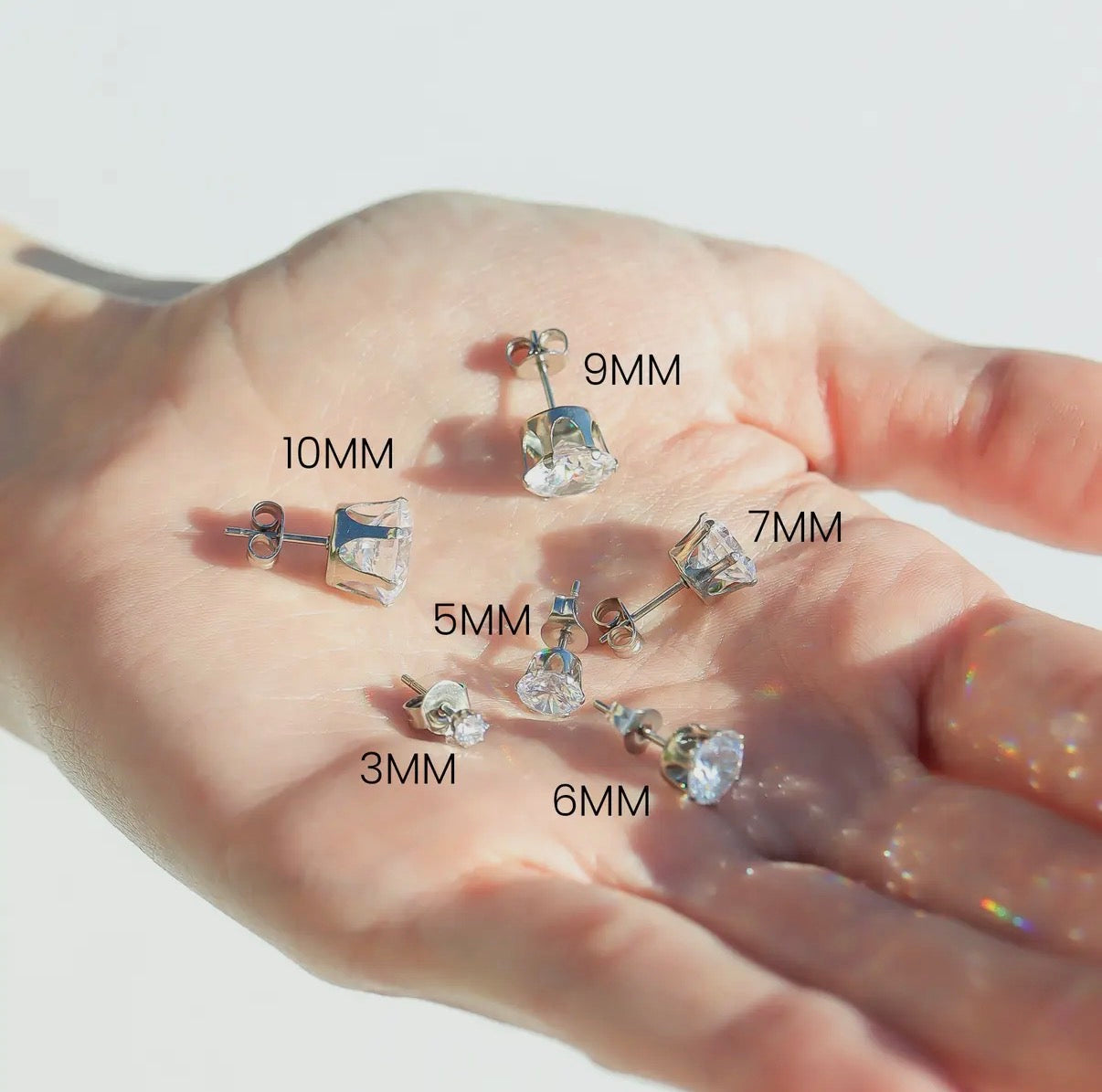 These lovely Stainless Steel Round CZ Stud Earrings are the perfect addition to any outfit. They are crafted with high quality stainless steel and feature a beautiful round Cubic Zirconia stone in the center. These stud earrings are sure to add a touch of sparkle and elegance to any ensemble. These stud earrings look pleasing standing alone or a part of an earring stack.